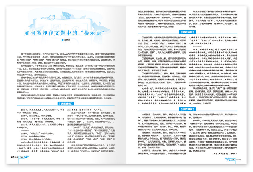 由延边教育出版社出版,是我国高中生里面影响力的读物之一,的内容风格现实犀利,通常用一些具有理性思辨的时事文章为中学生提供了解社会的窗口,将语文学习向社会延伸,培养综合语言能力,陶冶美感情操。在价值观宣传上,《及时时间》强调传播社会文化规范和价值体系,塑造青少年正确人生观,是我国一本高中生的新闻读本。