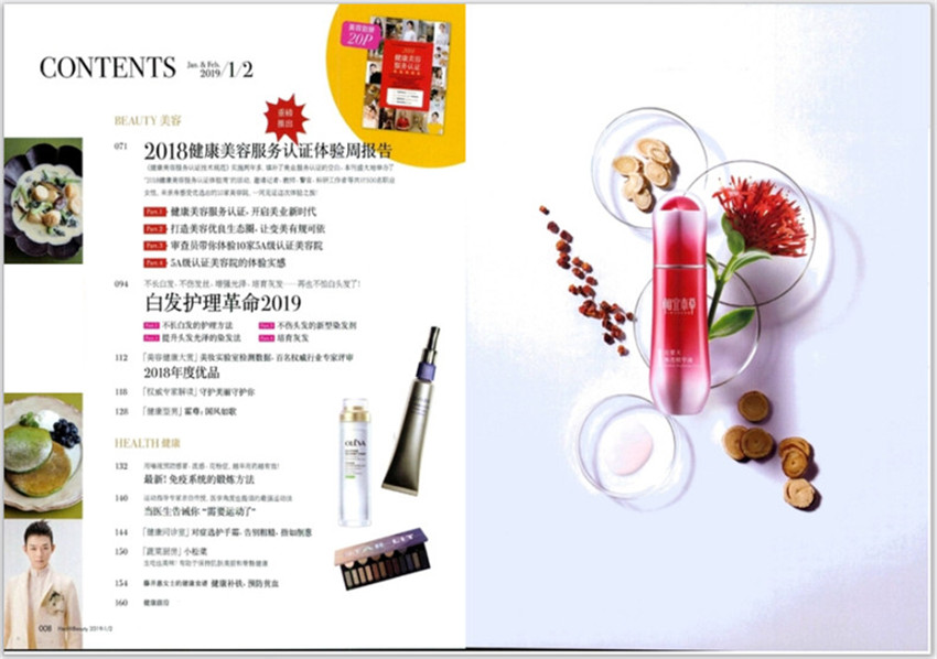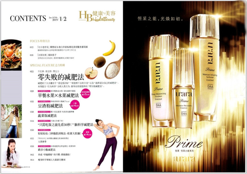 《健康与美容》杂志,(月刊),是面向全国发行的时尚娱乐类期刊,杂志拥有独到的思维与敏锐的眼光,使得杂志成为众多国际大品牌客户重视的核心媒体之一。详尽地介绍了健康的基本内容、健康的标准、影响健康的因素;亚健康的基本概念、主要表现、出现亚健康的原因、从健康到亚健康再到疾病的发展过程以及自我检测的方法、维护健康的基本原则和措施。