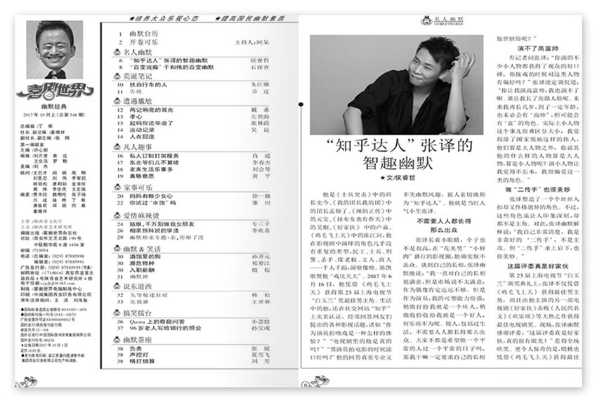 《喜剧世界》杂志,(月刊),是面向全国发行的家庭生活类期刊,杂志拥有独到的思维与敏锐的眼光,使得杂志成为众多国际大品牌客户重视的核心媒体之一。