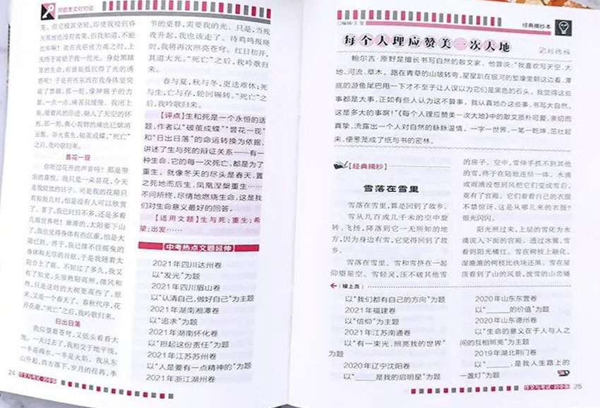 它不仅紧扣语文教学大纲与中高考命题趋势,提供切实可行的写作方法指导和范文解析,更注重引导青少年从阅读中汲取精神养分,从写作中学会观察生活、表达自我。每一篇精选的优美文章,既是写作技巧的示范,更是情感与思想的触动。孩子们在品读精彩文笔的过程中,能够自然而然地感悟到关于生活、成长、责任与梦想的种种道理,从而在提升写作能力的同时,完成内在心智的成熟与精神世界的丰盈。